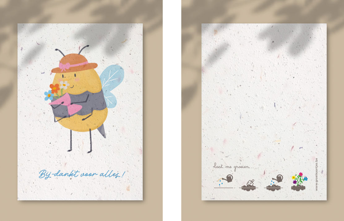 wenskaart groeipapier bij ‘Bij-dankt voor alles!’.