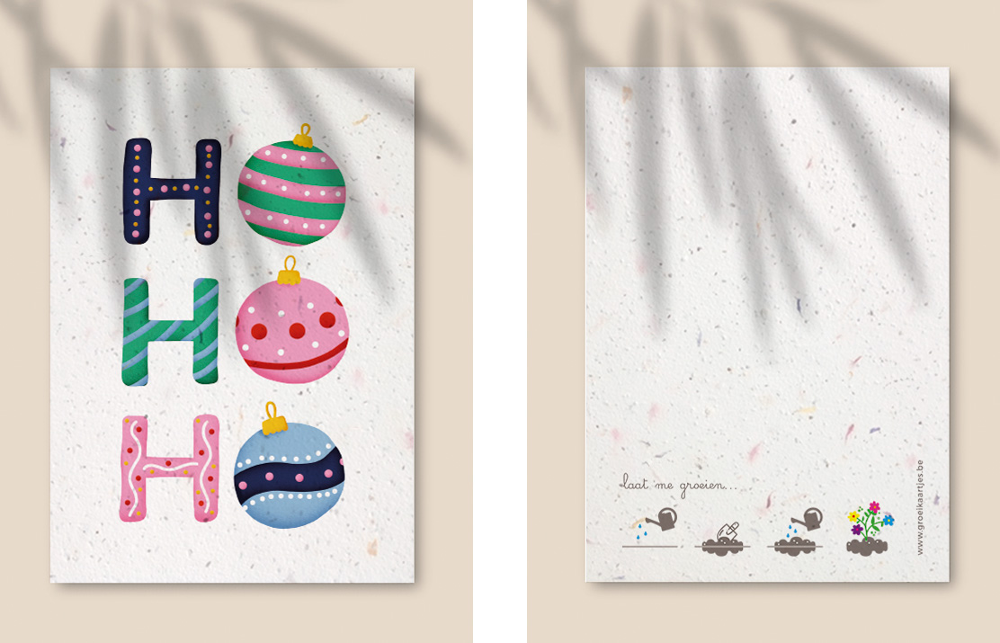 Een klein gebaar, met een mooie impact. wenskaart groeipapier ‘Ho Ho Ho’