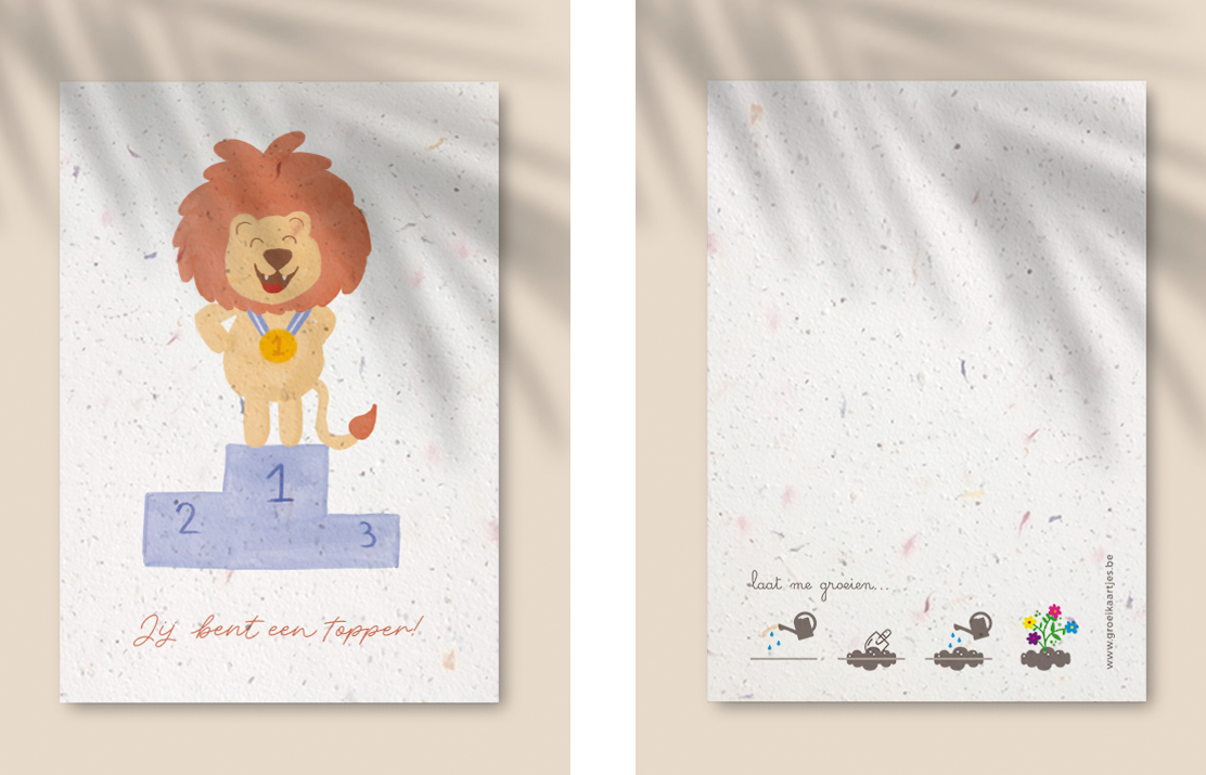Een klein gebaar, met een mooie impact. wenskaart groeipapier leeuw ‘Jij bent een topper’.